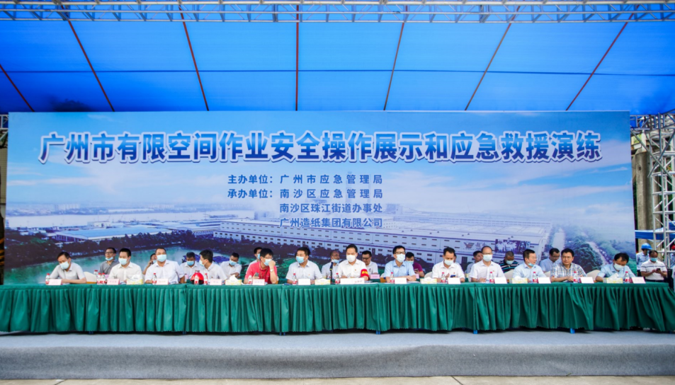 在公司领导的高度重视下,通过新产品分厂、办公室、人力资源部、采购部、生产部、物流管理部、园区发展部等部门的积极配合,广州市有限空间作业安全操作展示和应急救援演练于8月26日在公司成功举办。市应急管理局党委书记、局长黄彪、南沙区常务副区长谢明、金年会金字招牌信誉至上入口集团副总经理谭思马和公司党委书记、董事长周耘出席了本次活动,各区应急管理局和珠江街主要负责人、市有限空间作业重点企业代表、金年会金字招牌信誉至上入口集团安监部和各板块安全责任人及公司AB类部门共160余人现场观摩演练。